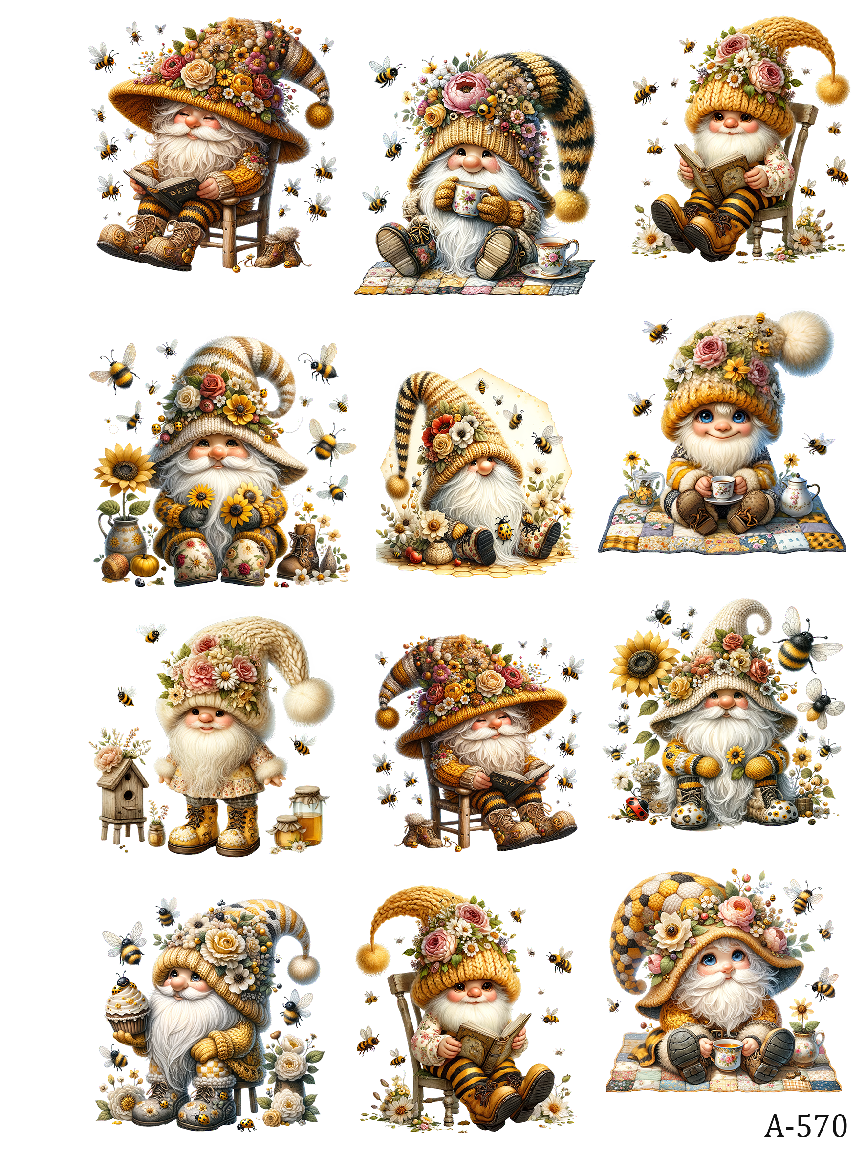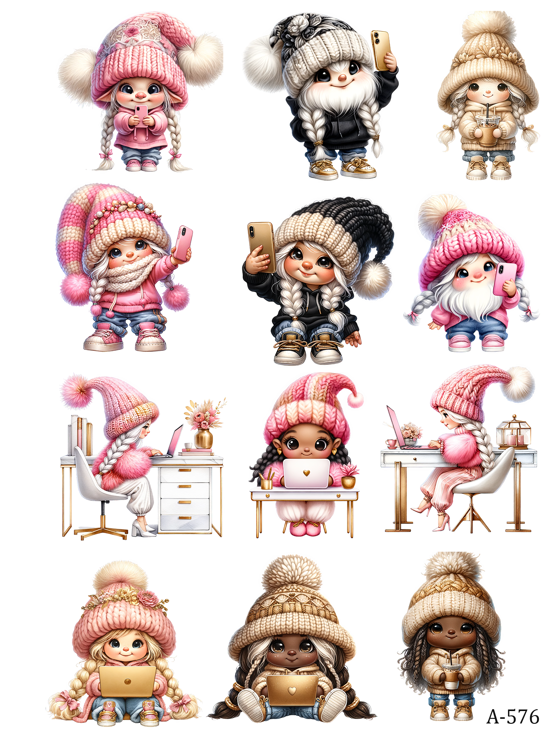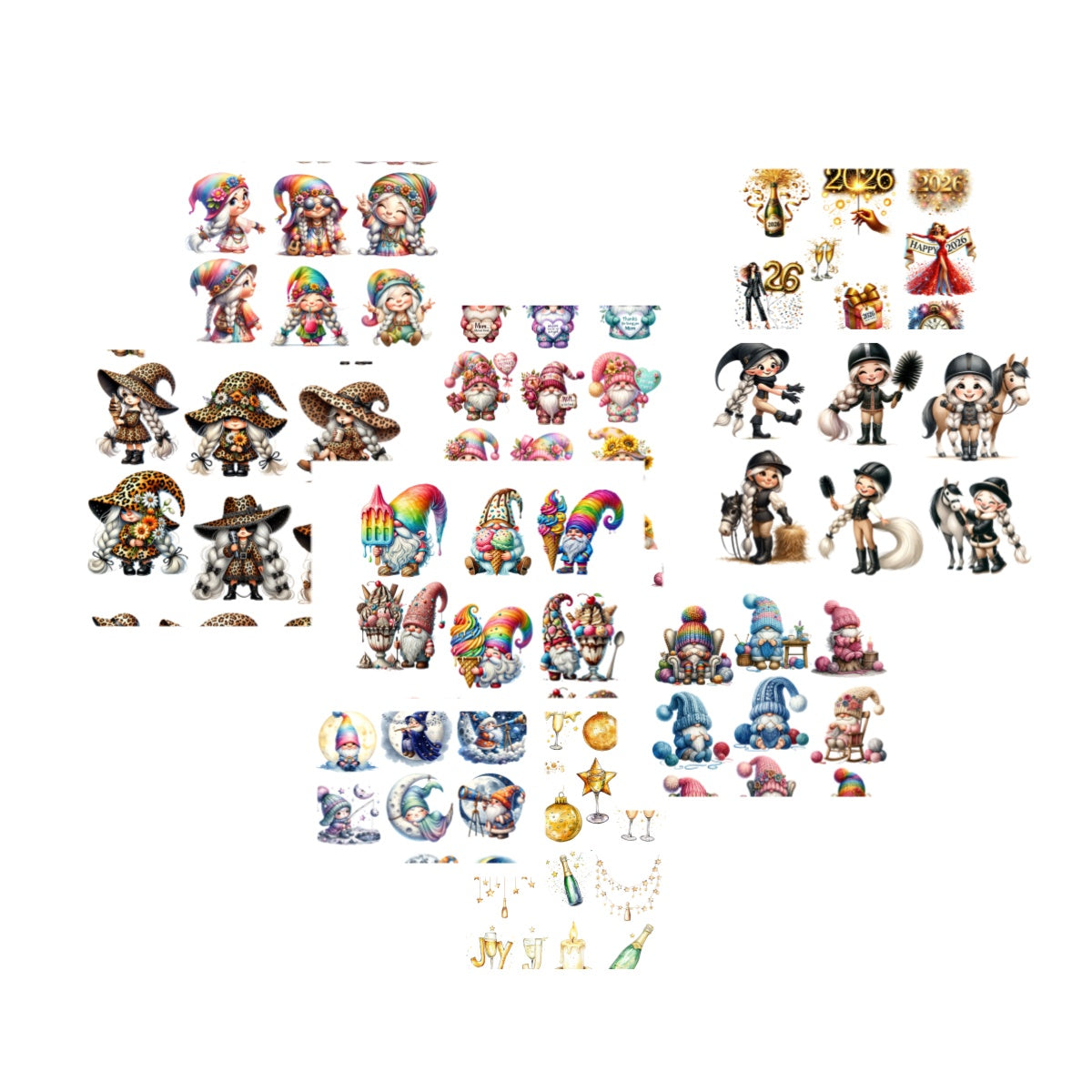 Gnomes embossed stickers bundle for journal scrapbook(20pcs + free holder)